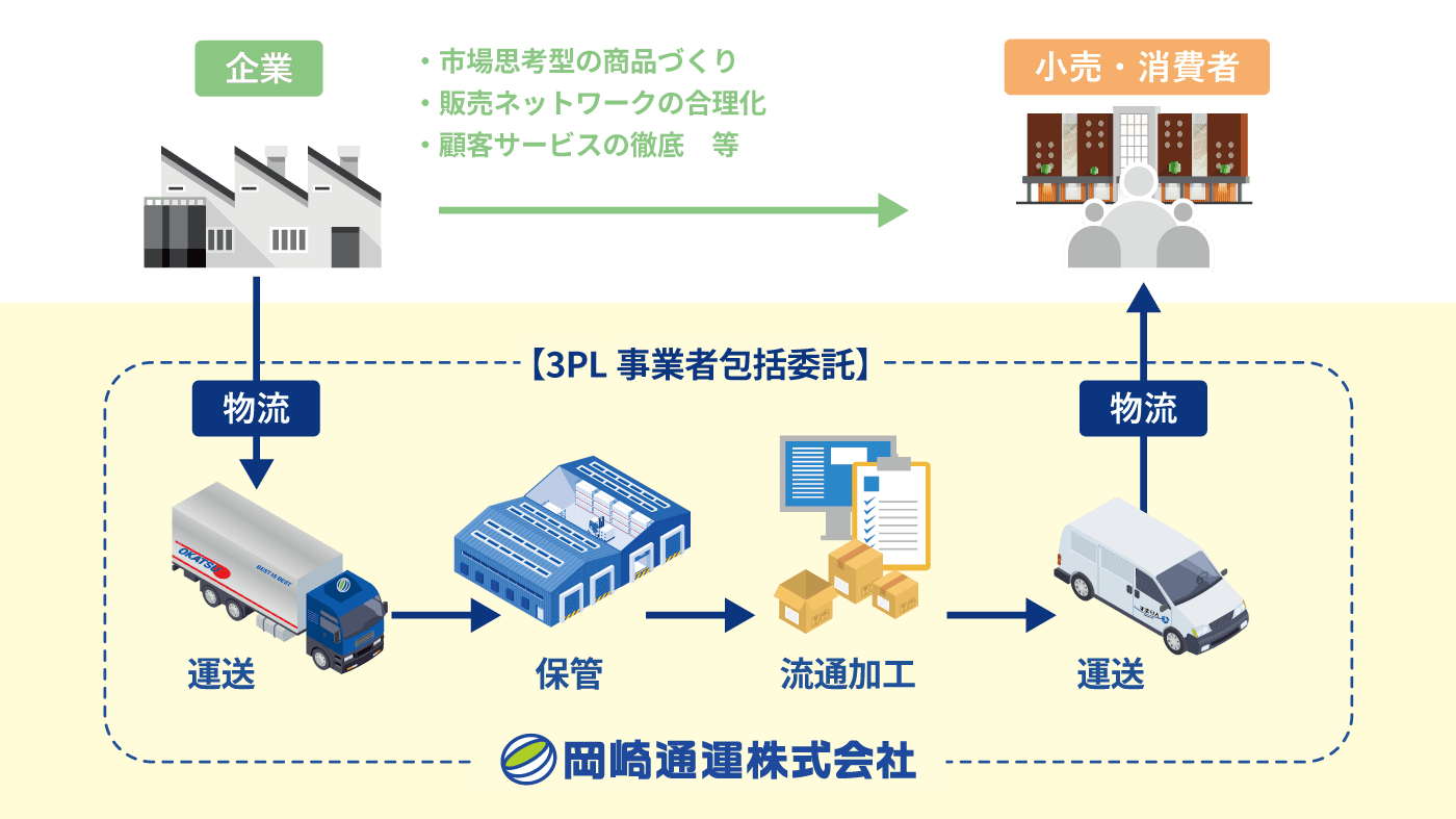 岡崎通運株式会社は物流業務を包括的に代行し、物流コストを最適化いたします。