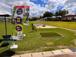 岡崎通運グループの岡通商事(以下当社)が取り扱っている環境芝を刈谷市総合運動公園に設置し、多くの方に体験をしていただきました。